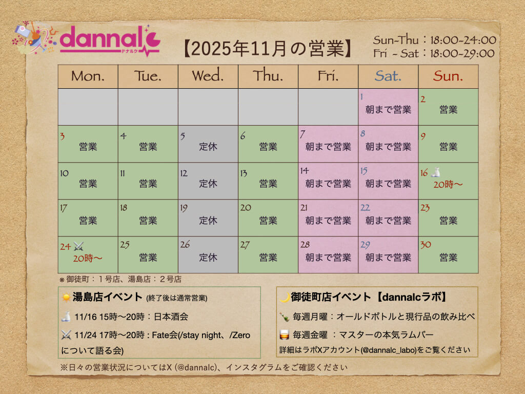 さて、11月の営業カレンダーのお知らせです📆